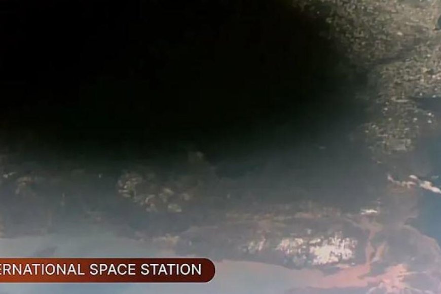 NASA flight engineers managed to photograph and videotape the moon's shadow on Earth about 260 miles below them.